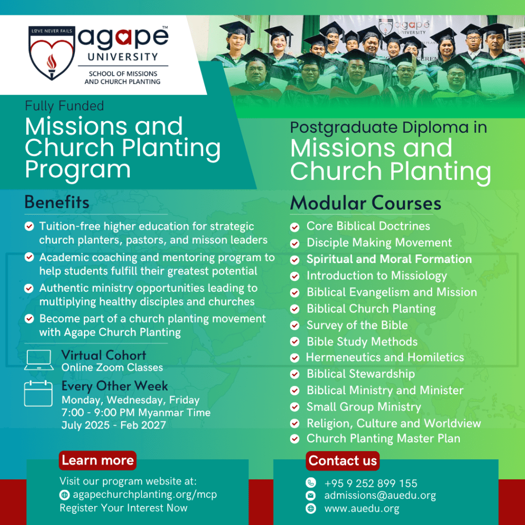 The Agape University School of Missions and Church Planting has upgraded the Diploma and Postgraduate Diploma Programs in Missions and Church Planting specialization to improve the teaching and learning quality and effectiveness with the aim of providing quality education and academic excellence that drive ministry and leadership excellence.